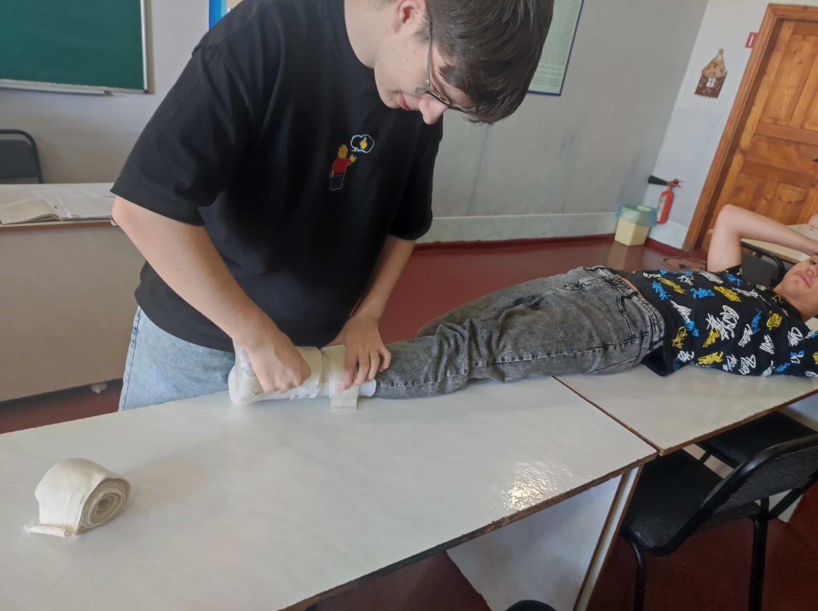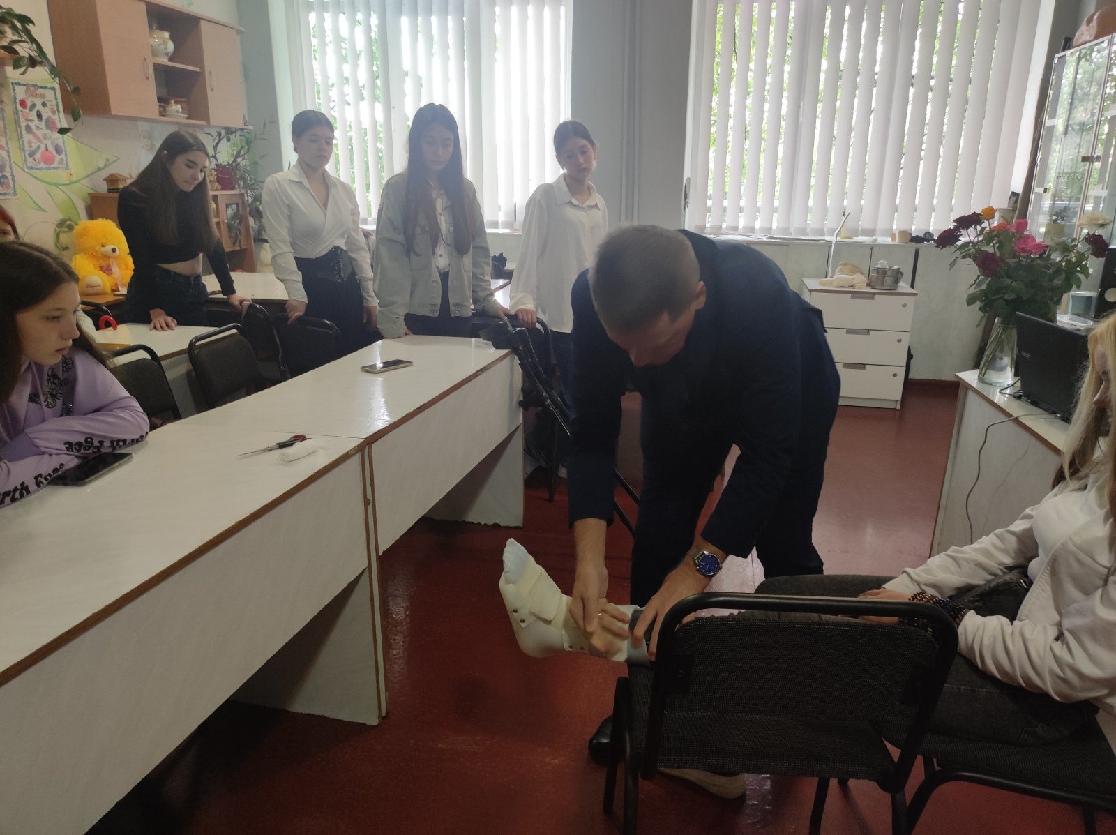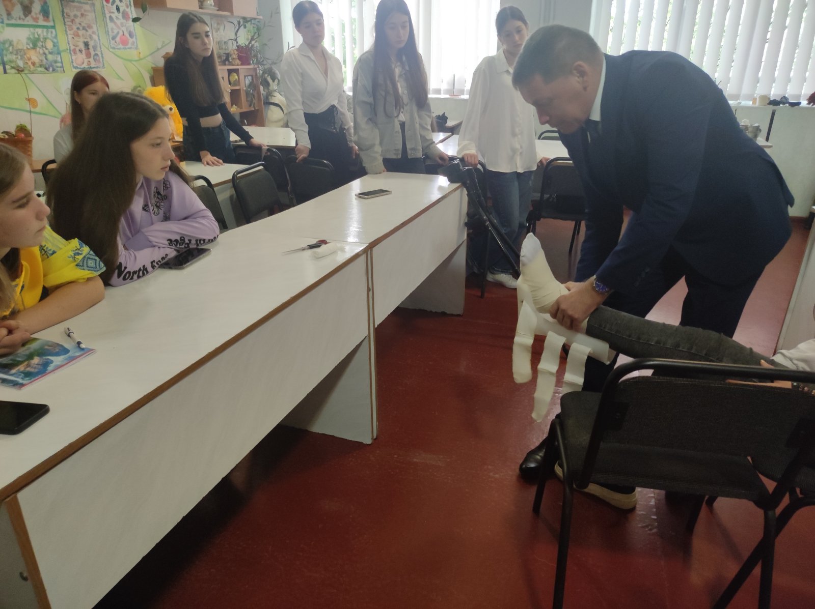 В рамках проведення Тижня безпеки дорожнього руху 10 листопада викладач Безерко І.В. провів практичні заняття з надання долікарської допомоги у випадках ДТП, в тому числі з і мобілізації верхніх і нижніх кінцівок через накладання шин та пересування за допомогою милиць, зі здобувачами навчальних груп №№ 3, 6, 4, 5, 8, 13. Мета -ознайомити та відпрацювати зі здобувачами освіти правила надання першої долікарської допомоги при ДТП. Як результат – здобувачі освіти засвоїли практичні навички з надання допомоги потерпілим при ДТП та визначення методів пересування у цих випадках.