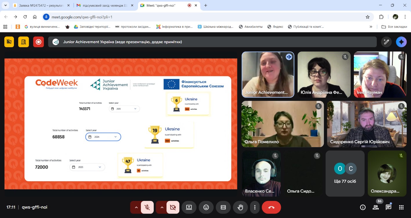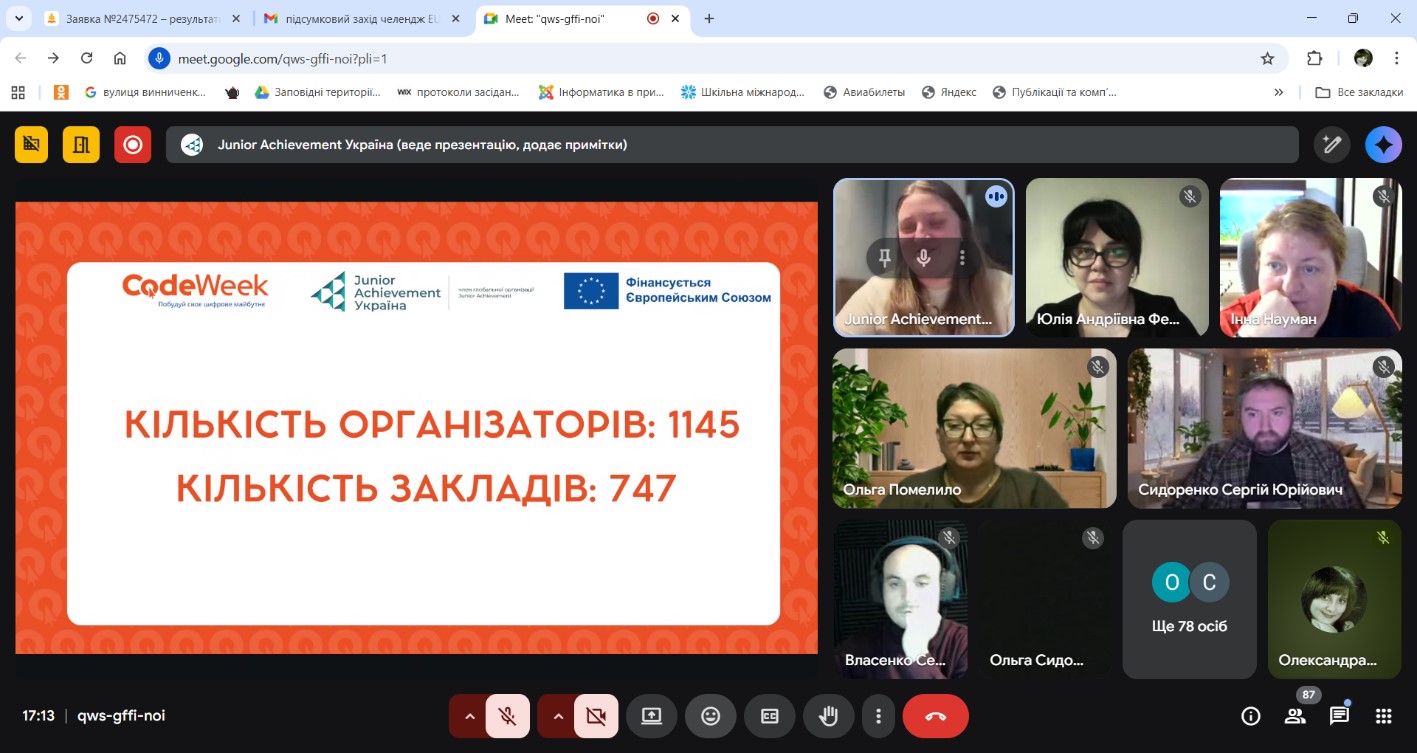 Так 10 листопада о 17:00 викладач Олександра САМБОРОВИЧ взяла участь у підсумковому заході «Челендж EU Code week».