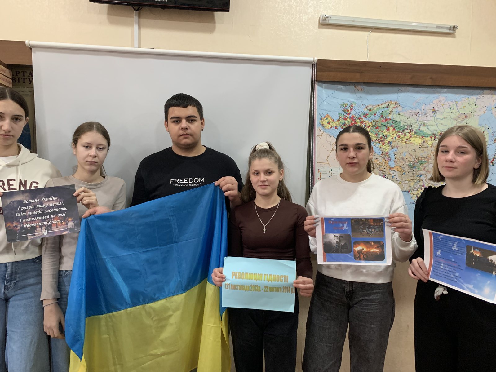 Викладачем захисту України Безерком І.В. оформлено інформ-дайджест «Ми стояли на Майдані…», проведено інформаційні п’ятихвилинки-пам’яті на уроках «День Гідності і Свободи» та круглий стіл на тему: «Заряджені гідністю і жагою свободи».