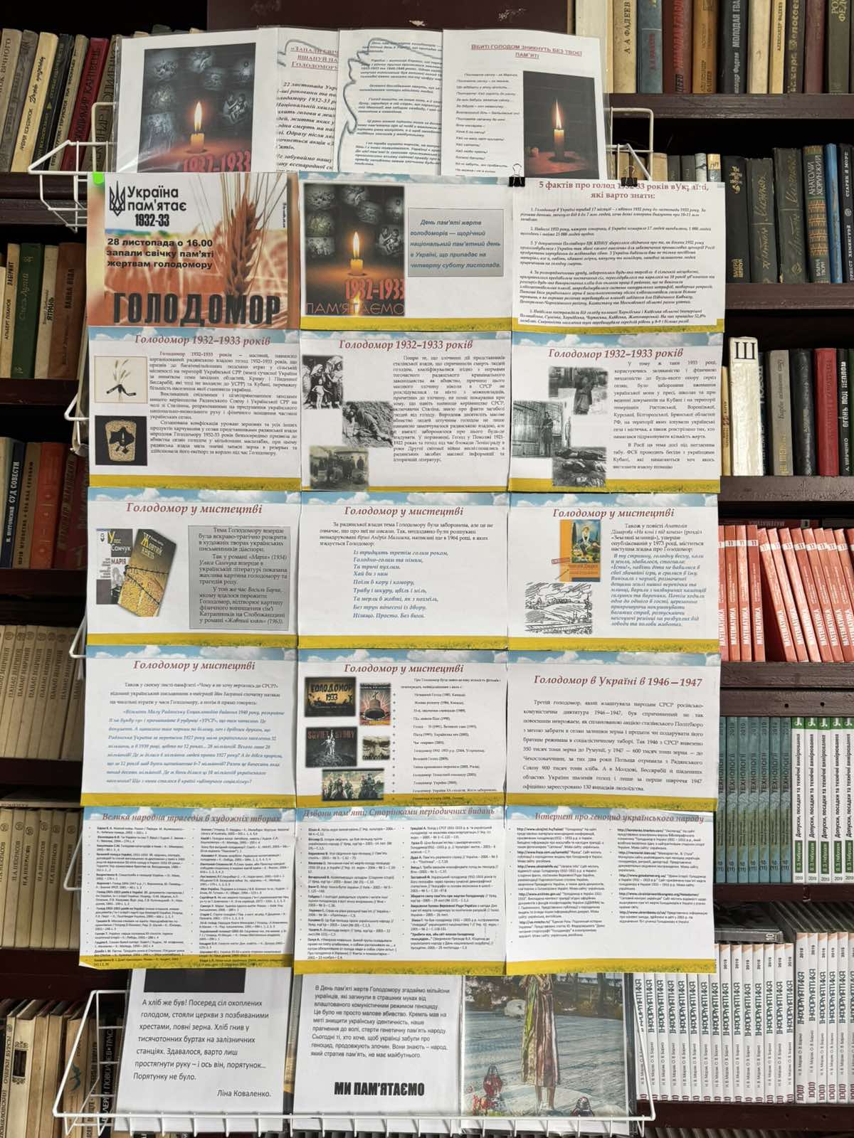 Бібліотекарем ліцею Андрейчук І.С. оформлено тематичну експозицію «Прости, нас пам’яте, прости…» – простір, у якому кожен може зупинитися та відчути голос історії.