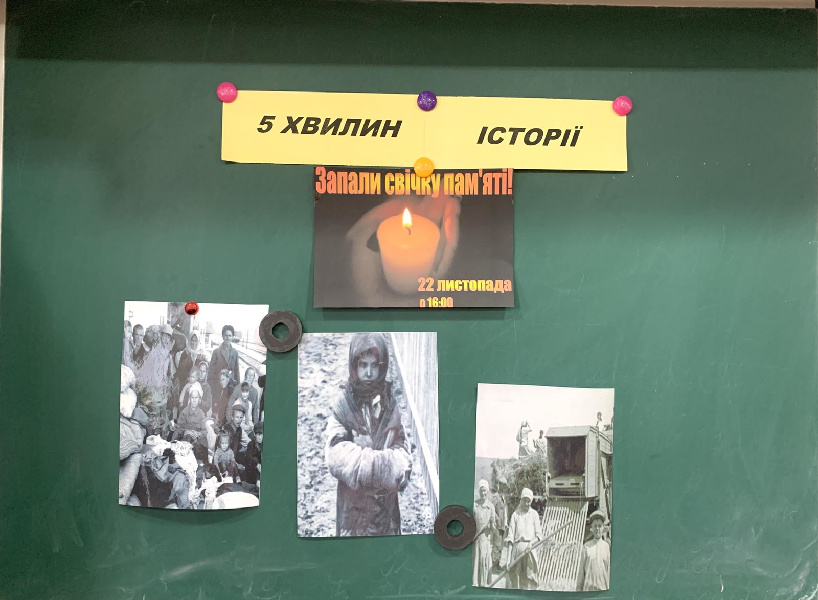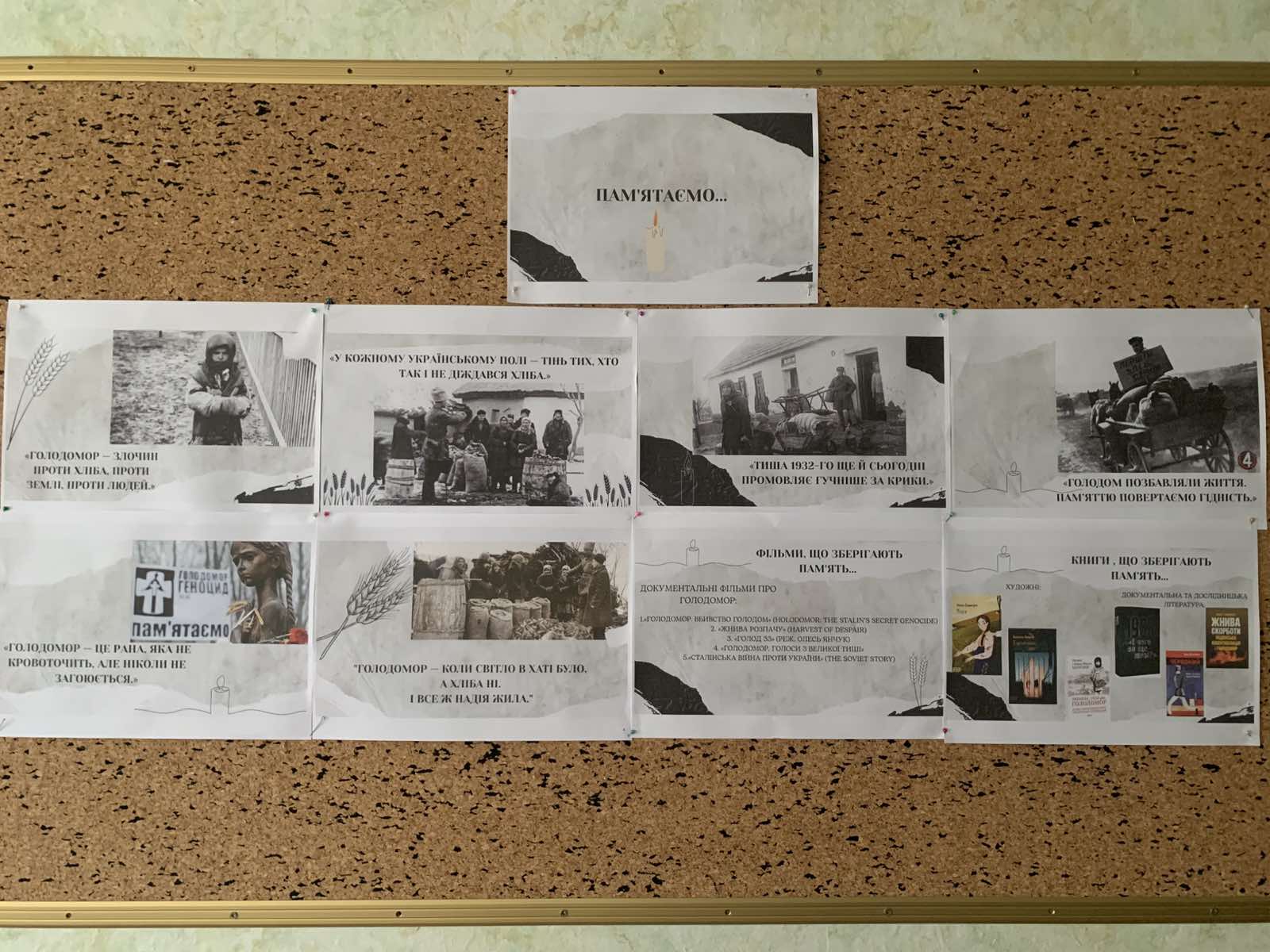 Викладач історії Чиж С.М. підготувала інформ-дайджест «Пам’ятаємо…», що відкриває ключові сторінки трагедії та її наслідки для української нації. На уроках історії проводилися інформаційні п’ятихвилинки-пам’яті «Голодомор 1932–1933 років – біль серця всієї України».