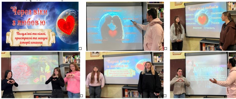 | 2. | Літературна композиція за інтимною лірикою зарубіжних поетів «Через віки з любов’ю». | 01.12.2025 | каб. 14, здобувачі освіти ІІІ курсу, груп 13,14,8. | Рогозевич Г.М. |