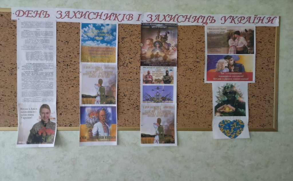 Інформ–дайджест «День захисників і захисниць України». Було оформлено інформаційний матеріал, присвячений історії свята, традиціям українського війська, сучасним захисникам та захисницям. Стенд відвідали здобувачі освіти всіх курсів.